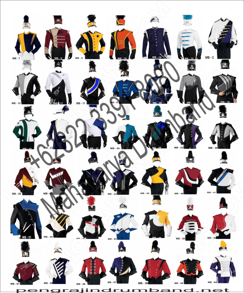 Design kostum drum band dan seragam marching band dengan model-model terbaru yang terdiri dari bermacam-macam model untuk TK, SD, SMP, SMA maupun Universitas/umum. Kesan mewah dan unik dari berbagai model kostum saat ini sudah menjadi keharusan untuk menambah keserasian dari unit drum band atau marching band tersebut. Perusahaan Seragam Pasukan TK Costume Goa